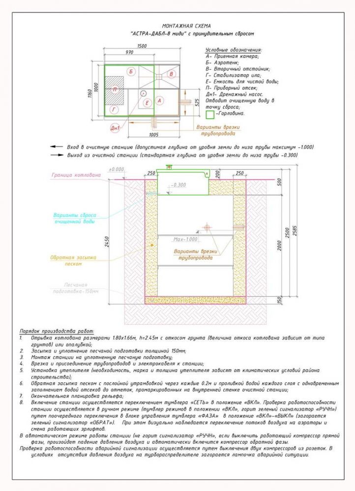 Насос для откачки: нет (самотечный сброс)
